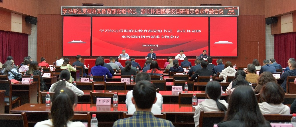 4月13日,学校在第二学术报告厅召开贯彻落实教育部党组书记、部长怀进鹏来校调研指示要求专题会议。学校党委书记郭天平、党委副书记张荣、党委委员、副院长赵柏森、财务与资产管理处长匡平参加会议,科级及以上干部代表聆听会议。会议由张荣副书记主持。郭天平书记指出,怀进鹏...