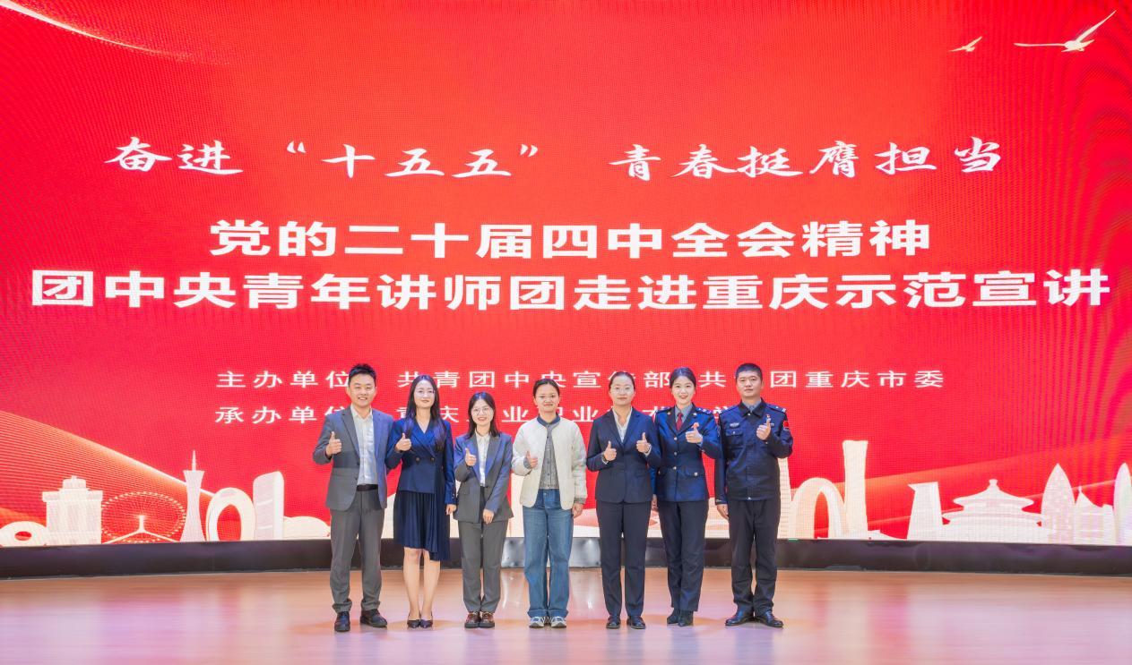 11月20日上午,由共青团中央宣传部、共青团重庆市委主办,我校承办的“奋进‘十五五’青春挺膺担当”党的二十届四中全会精神团中央青年讲师团走进重庆示范宣讲活动顺利举行。团市委副书记杨春渝、团中央宣传部宣传教育处处长张长宏以及我校副校长秦传江参加活动,学校430余名师...