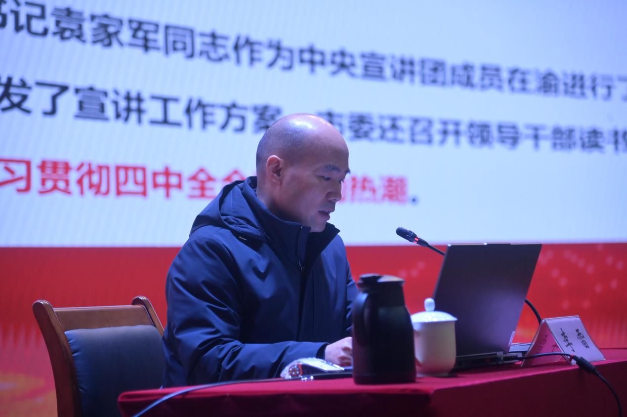 日前,党委常委、副校长、南川校区党工委书记、管委会主任袁国在两江校区和南川校区分别开展了党的二十届四中全会精神宣讲。宣讲以系统全面的逻辑体系解读全会精神核心要义,推动二十届四中全会精神在校园落地生根。南川校区管委会全体工作人员、基建后勤处、经济与管理学院(...