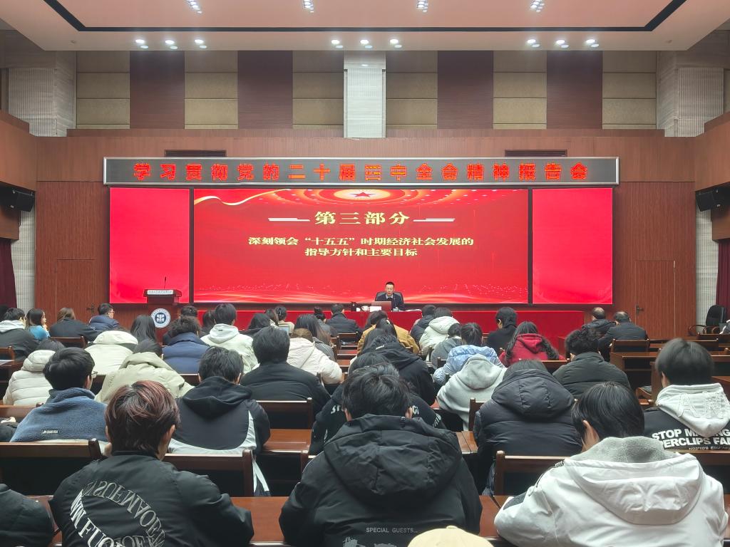 为贯彻落实学校党委关于学习贯彻党的二十届四中全会精神的工作部署,推动师生党员准确把握、深刻领会全会的核心内涵与精神实质,12月19日,党委书记郭天平在第三学术报告厅开展党的二十届四中全会精神宣讲。党政办公室全体工作人员、马克思主义学院全体教师及“青马工程”学员...