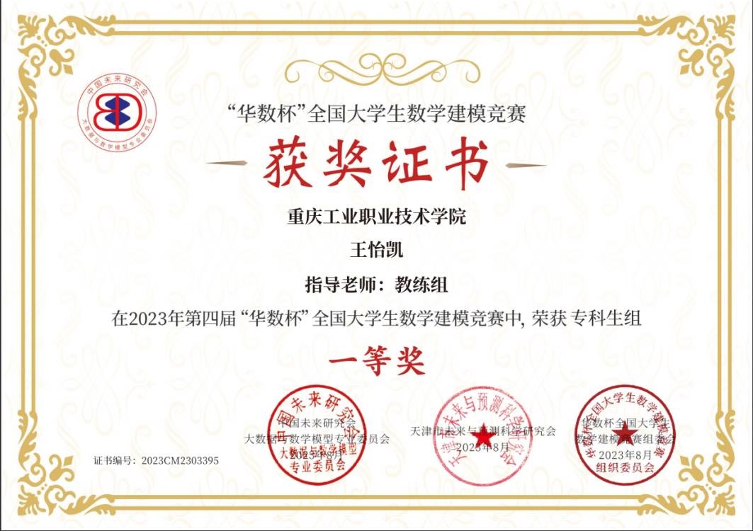 近期,我校学生团队在通识教育学院数理教研室数模教练团队的指导下,分别在2023年第四届“华数杯”全国大学生数学建模竞赛和2023年数维杯大学生数学建模竞赛中斩获专科生组全国一等奖,极大提升了学校在该类学科竞赛的影响力。
