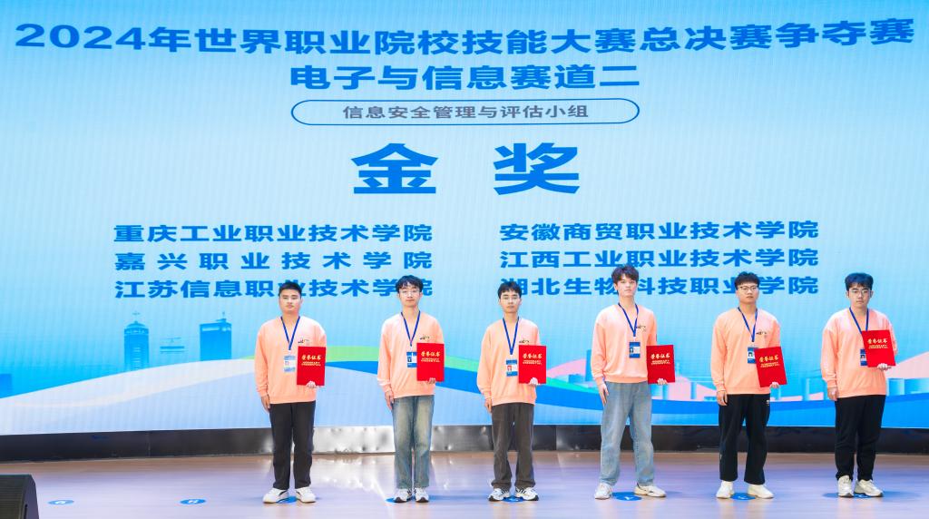 近日,2024年世界职业院校技能大赛总决赛争夺赛顺利闭幕。我校代表队在争夺赛中表现突出,斩获3个金奖、6个银奖和6个铜奖。其中,获得金奖的赛项有信息安全管理与评估、视觉艺术设计、数控机床装调与技术改造;获得银奖的赛项有化学实验技术、汽车故障检修、汽车营销、嵌入式系统应用开发、建设工程数字化计量与计价、机电一体化技术;获得铜奖的赛项有数字化设计与制造、智能网联汽车技术、智能电梯装配调试与检验、生产单元数字化改造、花艺、电子商务。信息安全管理与评估、视觉艺术设计2个赛项成功晋级排位赛,获奖总数与晋级排位赛数量位居重庆市高职组第一。