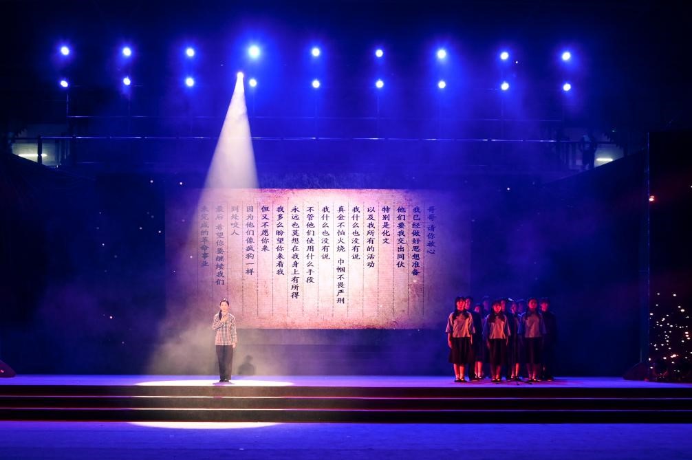 为庆祝中国共产党成立102周年,深入推进学习贯彻习近平新时代中国特色社会主义思想主题教育,弘扬伟大建党精神,不忘初心、牢记使命,6月29日,学校在体育馆举办“七一”表彰暨主题教育“再读红岩”汇报展演。团市委高校工作部部长潘毅,团市委组织部副部长雷蕾,市教委统战处副处长彭维炜,西南政法大学新闻传播学院副院长蔡斐,学校党委全体在家领导、中层干部、党员代表和学生代表们参加汇报展演。本次活动分为两个阶段,第一阶段为 “七一”表彰大会,第二阶段为主题教育“再读红岩”汇报展演。