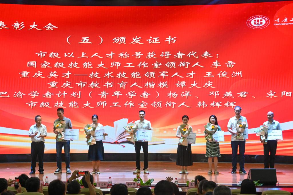 躬耕教坛,强国有我。在第39个教师节来临之际,9月8日下午,重庆工业职业技术学院2023年教师节暨表彰大会在第一学术报告厅隆重举行。学校党委书记郭天平以及全体在家党委委员、副科级以上干部(含教研室主任)、获奖教师代表、学生代表等近500人,欢聚一堂,共庆佳节。大会由党委副书记张荣主持。