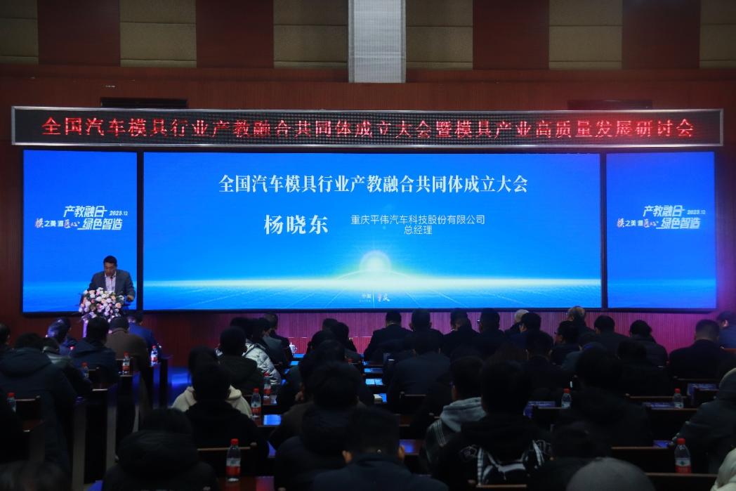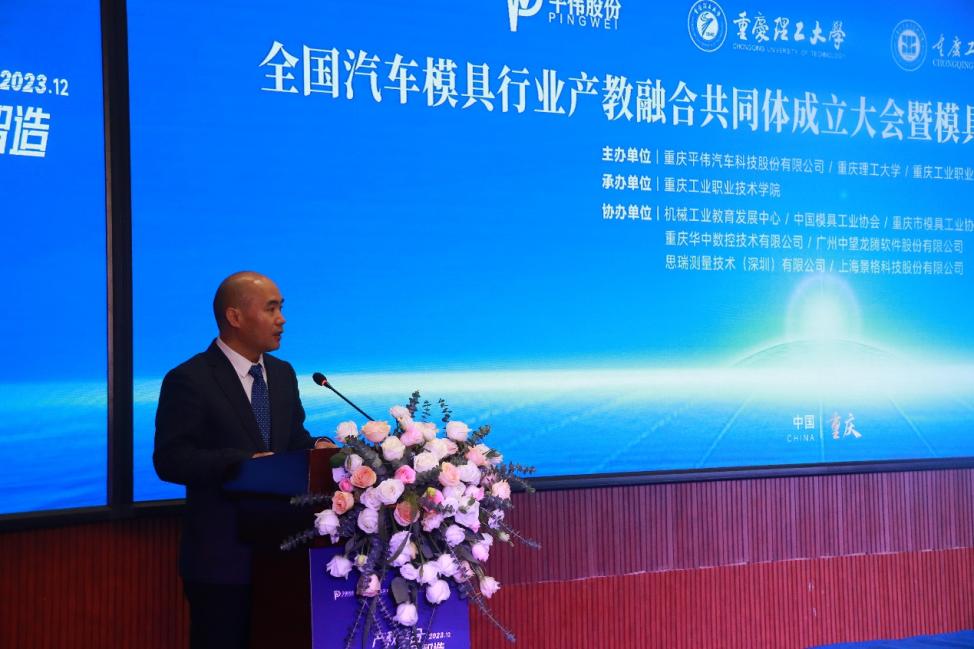为贯彻落实中共中央办公厅、国务院办公厅《关于深化现代职业教育体系建设改革的意见》《职业教育产教融合赋能提升行动实施方案(2023-2035年)》及教育部办公厅《关于加快推进现代职业教育体系建设改革重点任务的通知》要求,经过认真筹备和多次协商,12月23日,全国汽车模具行业产教融合共同体成立大会在我校举行。来自全国90余家科研院所、普通高校、职业院校、企业单位、行业机构携手成立产教融合共同体,共同推动汽车模具行业人才培养及持续发展。全国汽车模具行业产教融合共同体由重庆平伟汽车科技股份有限公司、重庆理工大学、重庆工业职业技术学院联合牵头发起,紧密结合汽车模具行业的产业与人才需求,致力于实现产教融合、职普融通、科教融汇三大目标,围绕汽车模具产业发展、产教融合、人才培养、专业建设等主题,共同探索产教融合新路径,共同助力汽车模具行业,促进产业链供需对接。出席会议的嘉宾有中国模具工业协会副会长、四川成飞集成科技股份有限公司总经理黄绍浒,机械工业教育发展中心工程与职业教育处主任工程师马骁,机械行业产教融合发展研究院总工程师、重庆工业职业技术学院机械工程学院荣誉院长滕宏春,重庆平伟汽车科技股份有限公司总经理杨晓东,重庆理工大学副校长何建国,重庆工业职业技术学院党委副书记、院长周传德,重庆工业职业技术学院党委委员、副院长李雷。