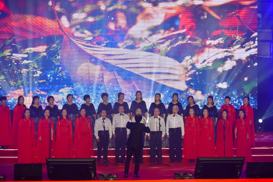 离退休教职工代表带来合唱歌曲《这世界那么多人》,感染了在场每一位热血追梦的重工人。