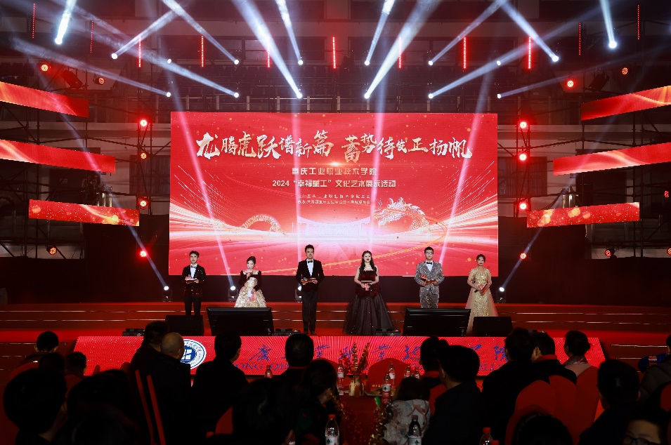 1月12日,由重庆工业职业技术学院工会委员会、校团委共同承办的2024年“幸福重工”文化艺术展示活动在学校体育馆举行。学校党委书记郭天平,党委副书记、院长周传德,党委副书记张荣,党委委员、副院长秦传江、徐兴旺,纪委书记颜正以及部分师生代表到场观看。