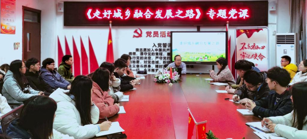 “40年前,我们通过农村改革拉开了改革开放大幕。40年后的今天,我们应该通过振兴乡村,开启城乡融合发展和现代化建设新局面。”徐兴旺副院长用习总书记的讲话引入,带领同学们从新时代中国城乡融合发展的重大意义、城乡融合发展历程和成效、城乡融合发展不平衡现状及城乡融合发展新路线等几个方面全面了解了我国经济社会发展取得的巨大成就和城乡融合发展成效,充分认识和了解我国经济发展优势,教育同学们要坚信中国经济航船在国内外复杂严峻经济形势下将乘风破浪行稳致远,坚信在中国共产党领导下我国有能力、有条件处理好工农关系、城乡关系,顺利推进我国现代化进程。