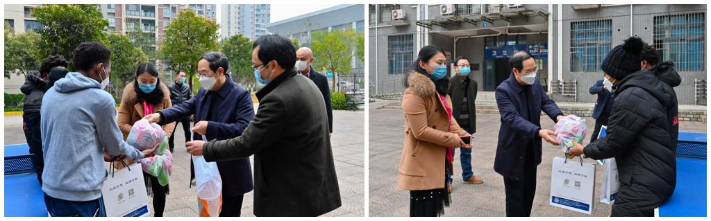 王官成书记还深入学生宿舍,为6名越南及南非留学生送去口罩、体温计以及生活物资等慰问品,并与留学生一一交流,送去学校关心和问候,感谢同学们对学校疫情防控工作的理解和配合,叮嘱大家提高防范意识、做好科学防护,同时要合理安排好自己的学习和生活。