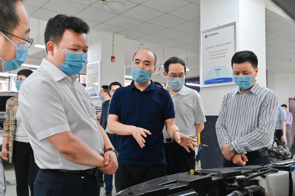 5月9日,渝北区委常委徐永德率区政府办、区经信委、区人力社保局、区大数据发展局、区临空办、仙桃数据谷公司相关同志一行到校调研,指导和促进学校开展校地合作、校企合作。学校党委书记王官成、院长郭天平,副院长徐兴旺,相关职能部门、二级学院负责人等陪同调研。调研组一行参观了学校现代制造技术实训中心、车辆工程学院实训中心、重庆市李雷技能大师工作室、重庆市汽车动力系统测试工程技术研究中心,而后在办公楼三楼会议室展开座谈。