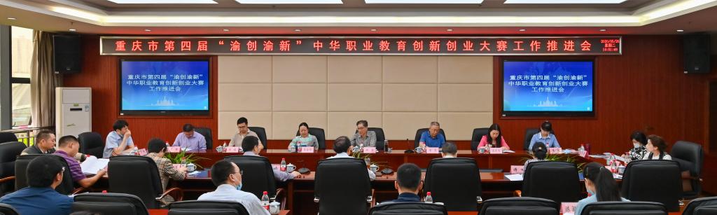 5月26日,重庆市第四届“渝创渝新”中华职业教育创新创业大赛工作推进会在学校办公楼三楼会议室召开。市委统战部二级巡视员、市职教社常务副主任林勇;市中华职教社秘书长唐勇,办公室主任李渝西,副秘书长余燕青等人;市教委职成教处、高教处,市人社局,市教科院,曙光珠宝职业学校(曙光工业园),渝北区职教社的相关负责同志;学校党委书记王官成、院长郭天平,副院长徐兴旺以及相关部门负责人等参加会议,共同商议本次大赛工作推进事宜。推进会由市委统战部二级巡视员、市职教社常务副主任林勇主持。