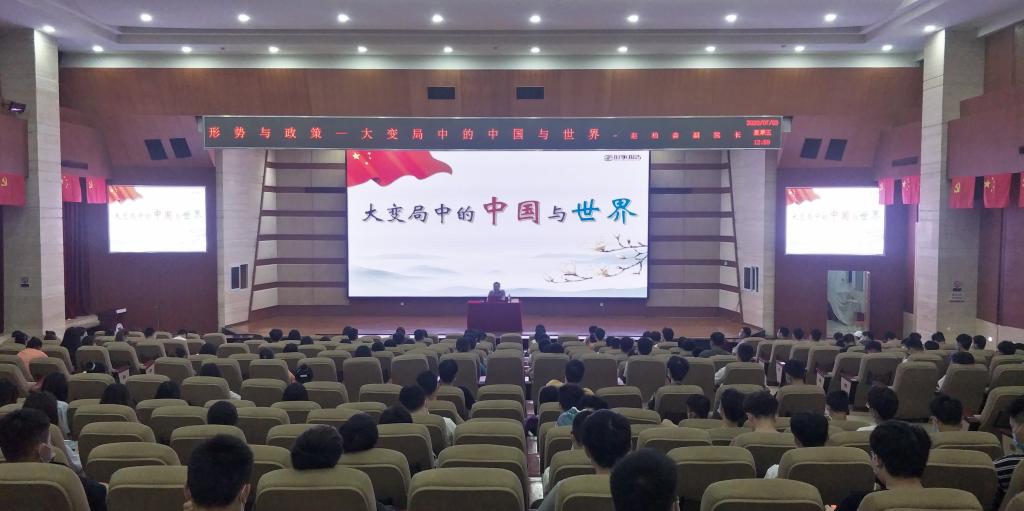 赵柏森副院长从“深刻认识百年未有之大变局”“大变局中机遇与挑战同生共存”“大变局中的中国角色”三个方面为同学们阐释了当今世界的形势和格局。他谈到,在当今世界局势下,要深刻认识“百年未有之大变局”的“变”,直面快速变化给中国带来的巨大挑战。中国正处于近代以来最好的发展时期,综合国力发展快、世界影响力大,希望同学们要认清形势,努力学习,珍惜伟大时代给我们提供的优越条件,紧紧抓住在大变局中带来的发展机遇,主动、超前识变,积极应变,在融入大变局、融入新时代的过程中发展自己、成就自己。
