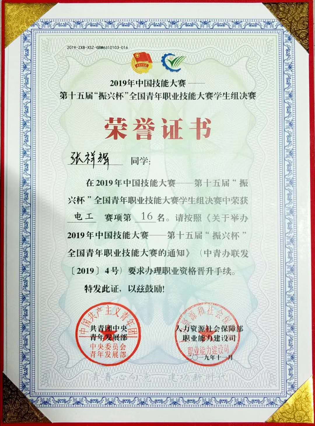 学校轨道交通与航空服务学院持续推进教学改革,师资力量不断壮大,高技能型人才培养效果显著,向社会企业输送了大量优秀人才资源。其中,学院城市轨道交通机电技术专业取得了良好成绩。2017级城市轨道交通机电技术专业301班学生张祥辉获得第20届“全国青年岗位能手”称号、教育部第十三届西门子杯智能制造挑战赛全国总决赛获得“特等奖”、第十五届“振兴杯”全国青年职业技能大赛学生组决赛电工赛项第16名,多次获得国家励志奖学金、校级综合奖学金;2016级轨道专业301班学生邓雪刚获得教育部第十三届西门子杯智能制造挑战赛全国总决赛“特等奖”;2017级轨道专业301班崔瑛获得第十三届全国高等职业院校“发明杯”大学生创新创业大赛(发明制作类)一等奖。