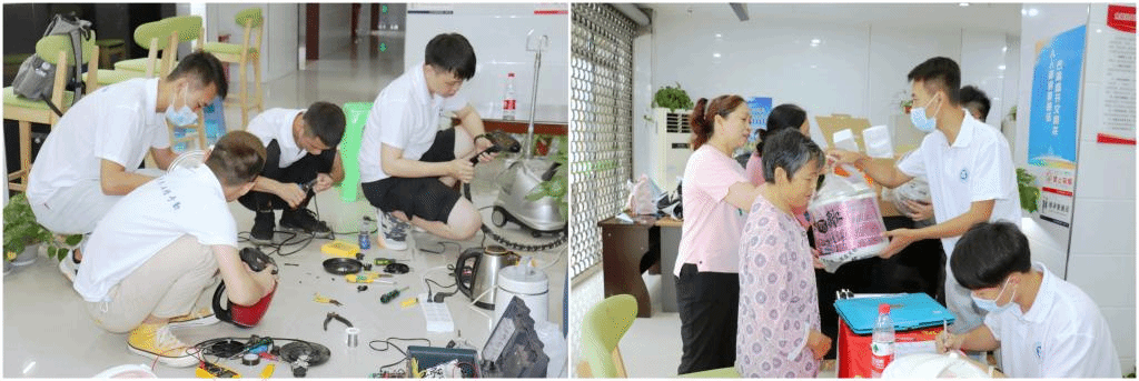 活动第一天,志愿者们为社区居民提供了家电维修服务。同学们热情接待前来寻求帮助的居民,对不能正常使用的电风扇、热水壶、电饭煲、吹风机等家用电器进行登记,耐心地向居民讲解家电的使用与保养方法;对无法维修的电器,仔细地解释原因并给予物品处理建议。此次家电维修服务活动持续了两天,维修各类电器近50件。志愿者们专业的技术和热情耐心的服务获得了居民们的一致好评,志愿者们纷纷表示“作为一名重工学子,能将课堂所学的知识运用到实践中,帮助社区居民解决实际问题,是一件特别有意义的事情。”