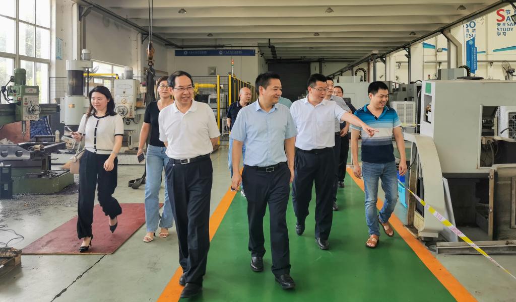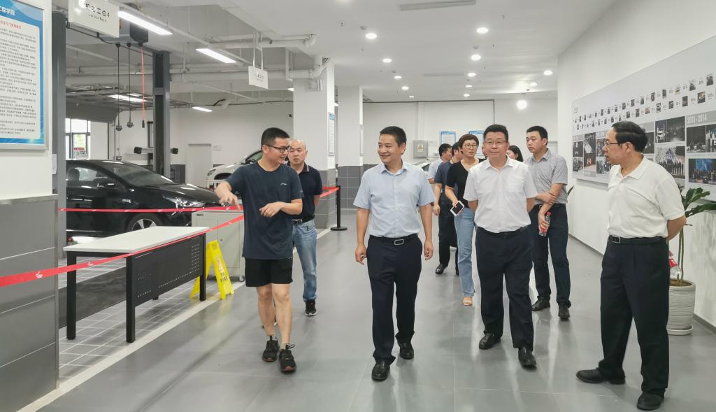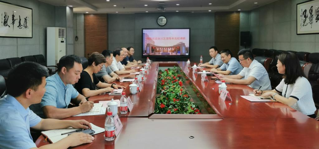7月27日,永川区委常委、永川高新区党工委书记宋文,永川高新区管委会主任张朝国以及相关负责同志等一行4人到校调研。学校党委书记王官成、院长郭天平,相关职能部门负责人等热情接待了调研组一行,陪同参观了学校现代制造技术实训中心、车辆工程学院实训中心、经济与管理学院实训中心,并在办公楼六楼会议室开展了座谈。