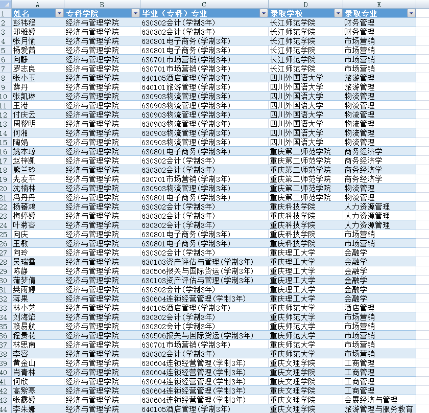 2020年“专升本”考试部分录取学生名单