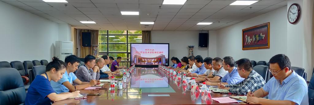 学校党委书记王官成代表学校对调研组一行表示热烈欢迎。双方围绕智能制造产教融合项目顶层设计与组织领导、校企协同运行机制建设、产教融合项目实施方法与路径等内容展开交流。王官成书记重点介绍了学校人才培养、专业建设、师资建设、科学研究、社会服务、文化传承等方面的情况。内江职业技术学院党委书记任孝勇高度赞扬了我校在学生综合素质提升和师资建设方面取得的成果,同时介绍了内江职业技术学院在党建方面的基本情况。会上,学校相关职能部门、二级学院负责人还介绍了我校在高层次人才引进、绩效改革、实训中心建设等方面的做法和经验。