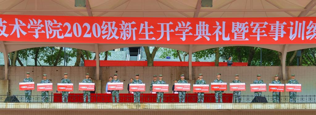 徐益副院长宣读了学校《关于表彰2020级新生奖学金获奖学生的决定》,决定授予隆丹等761名同学各等级各类别新生奖学金。主席台就座全体领导为新生奖学金获得者代表颁发奖学金。