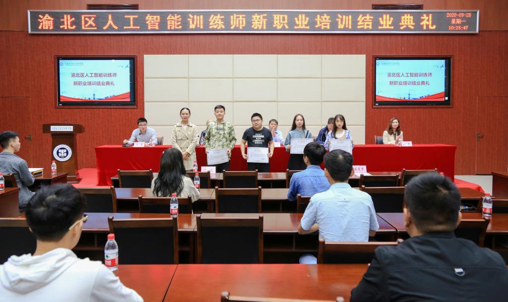 9月28日,渝北区首批人工智能训练师新职业培训结业典礼在学校第二报告厅顺利举行。渝北区人力资源和社会保障局党委书记、局长邓贤伦,党委委员、就业和人才中心主任韩玉平、副主任刘茜等相关负责人,学校人工智能与大数据学院院长王璐烽、继续教育与培训学院院长马睿以及参培的50名学员参加结业典礼。结业典礼由继续教育与培训学院院长马睿主持。