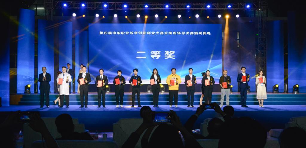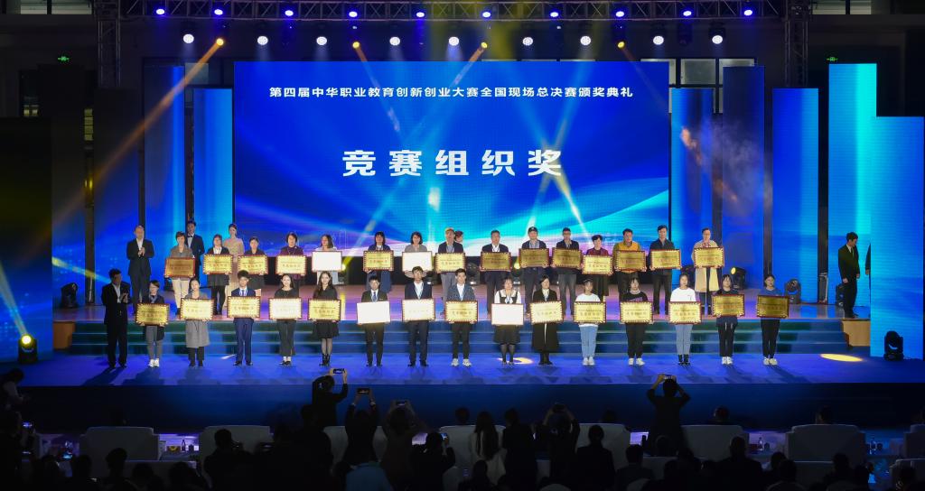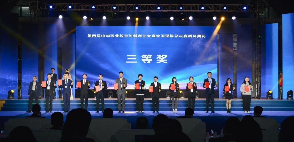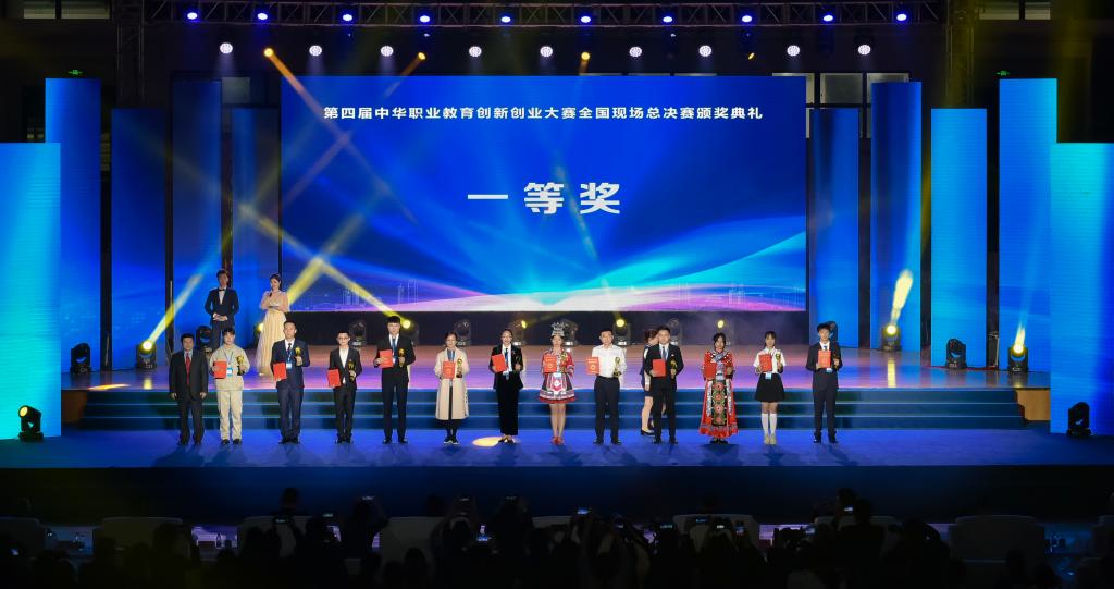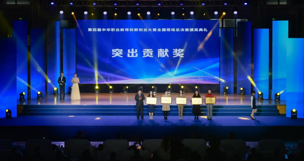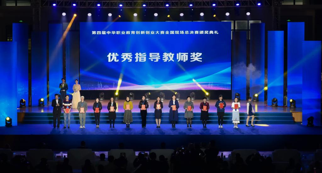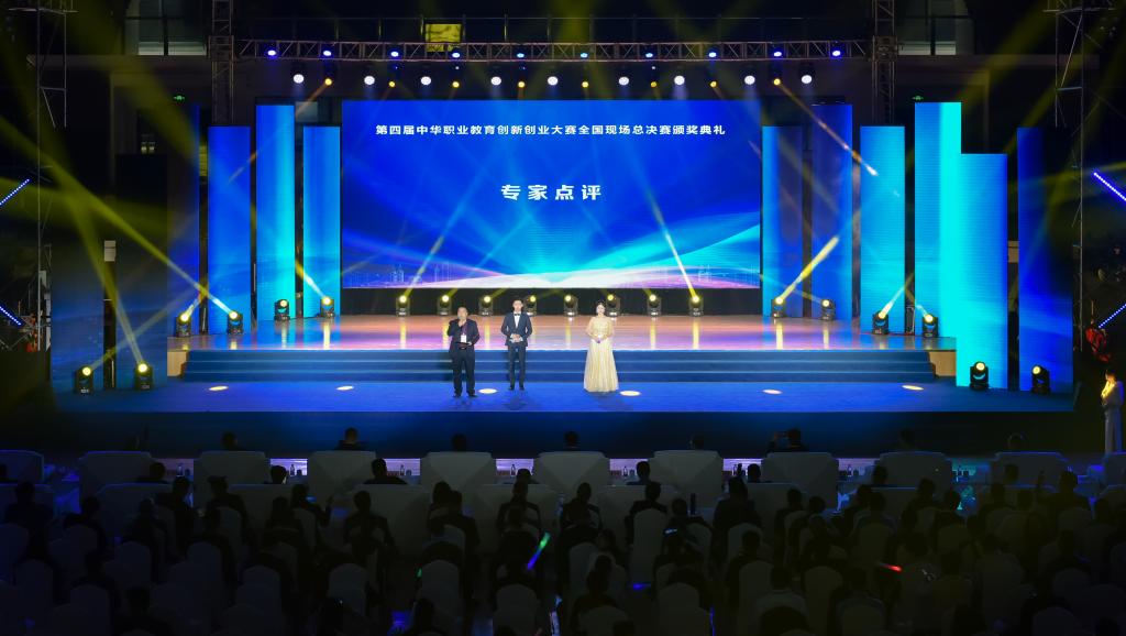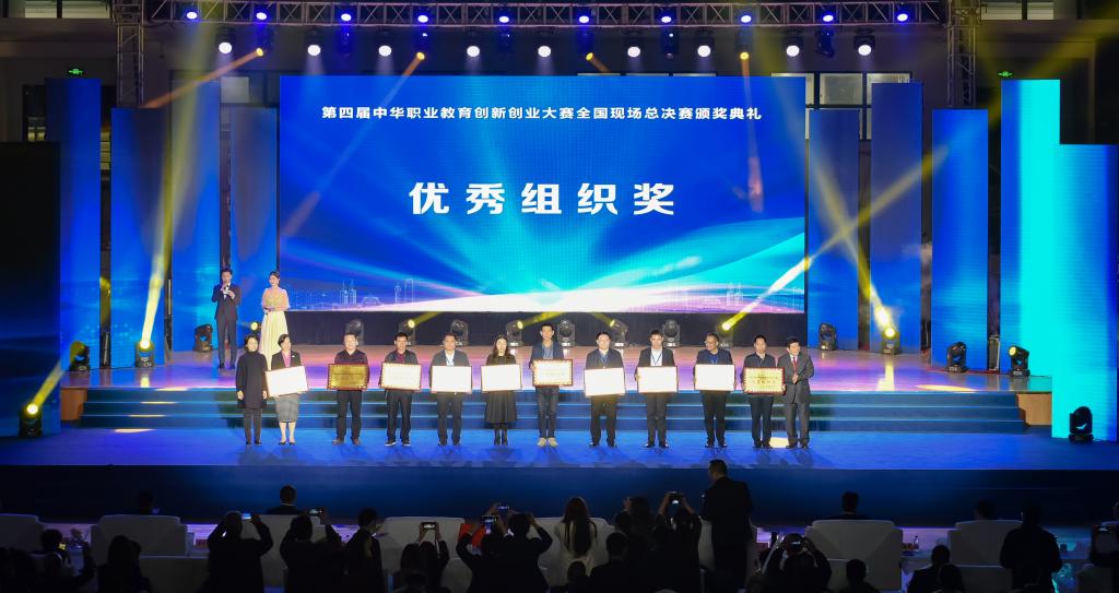 11月17日晚,第四届中华职业教育创新创业大赛全国现场总决赛圆满落下帷幕,颁奖典礼在重庆工业职业技术学院体育馆举行。中华职业教育社党组书记、总干事方乃纯,中华职业教育社副总干事李英爱,重庆市委统战部二级巡视员、市中华职业教育社常务副主任林勇,重庆市人社局二级巡视员梁碚嘉,重庆市曙光都市工业园董事长、市中华职业教育社副主任汪官蜀,重庆市教育科学研究院党委委员、市中华职业教育社社委姜伯成,重庆市教育委员会职业教育与成人教育处处长吴岚,重庆市中华职业教育社秘书长唐勇,重庆工业职业技术学院党委书记王官成,中国技术创业协会创新创业专家委员会副主任、湖南股权交易所专审委员宋天翔出席颁奖典礼;全体参赛团队,各省级观摩团及相关单位负责同志等参加颁奖活动。
