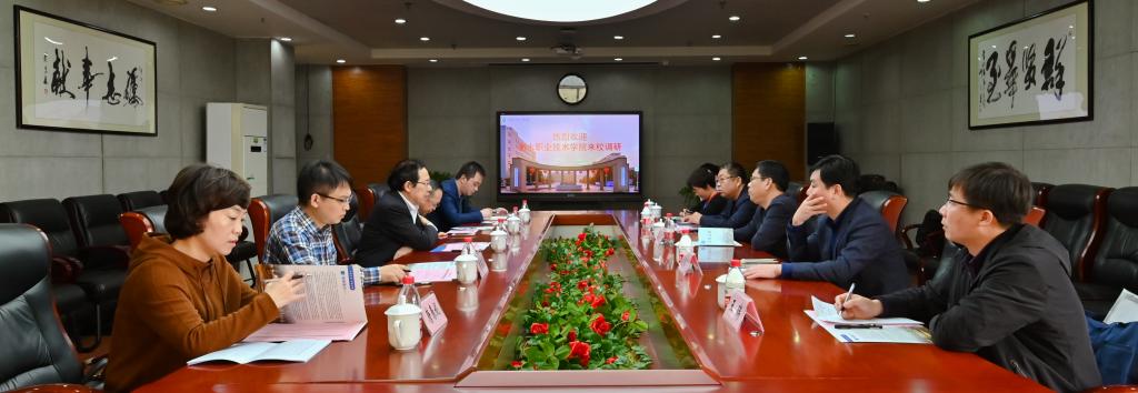 11月19日,衡水职业技术学院党委书记李增军,党委副书记、院长李建广, 副院长万秋,机电工程系主任王瑞;北京神州数码云科公司河北区总监尤国侠;河北慧网科技教育服务部总监程鹏等6人到校调研。我校党委书记王官成,副院长徐兴旺以及相关职能部门、二级学院负责人等热情接待了调研组一行,并在办公楼六楼会议室开展座谈。