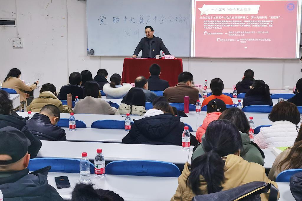日前,学校党委委员、副院长秦传江作党的十九届五中全会宣讲报告。学校相关职能部门和通识教育学院全体教职员工参加宣讲会。