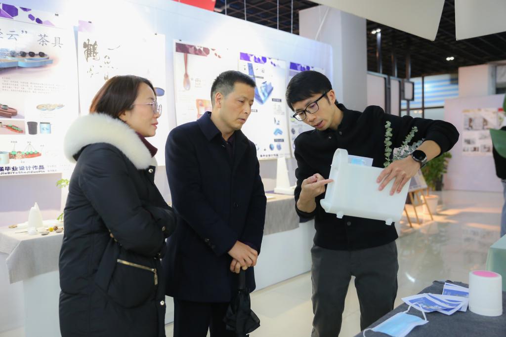 日前,学校设计学院2021届毕业生设计作品展在图书馆举行。市司法局机关党委专职副书记、百食村第一书记杨懿,华龙网产教融合发展中心总经理彭发清,学校党委书记王官成,院长郭天平参加开幕式并作现场指导,设计学院全体教师和毕业生参加开幕式。