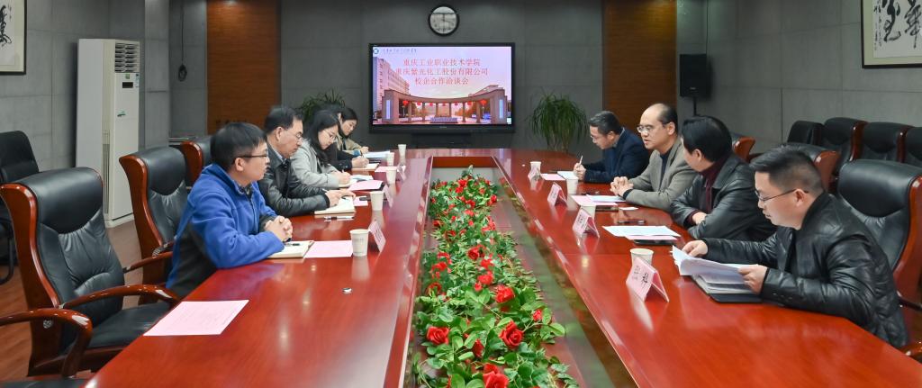日前,重庆化医控股(集团)公司紫光化工股份有限公司党委书记、董事长涂红,党委副书记、监事会主席周祥铭一行4人来校洽谈校企合作。学校副院长徐益,产教融合研究中心主任袁苗达、化学与制药工程学院副院长吴明珠,学院专任教师代表参加洽谈会。
