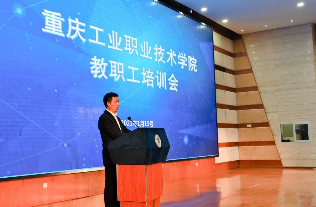 为切实提升全校教职员工思想政治素养和业务能力,以更好面貌和更高水平推动学校“双高计划”建设下各项任务取得新突破,学校于1月15日启动了教职工能力提升培训会。根据疫情防控要求,本次会议设置主会场和分会场,其中主会场设在第一学术报告厅,参会人员为职能部门处级干部(含组织员、纪检员)、二级学院代表(含书记、院长、组织员、教研室主任、教授、博士、教师代表),由党委委员、副院长赵柏森主持;分会场设在第二学术报告厅,参会人员为全体科级(岗位负责人)干部;其他人员由所在部门组织进行线上直播学习,真正实现了全校教职工全覆盖。