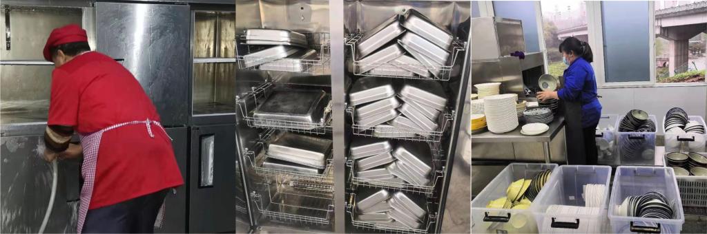 各食堂召开了开学前员工大会,强调要重视食堂卫生问题,尤其要在疫情防控常态化背景下切实保障学校广大师生用餐食品安全。食堂员工积极行动,对餐器具进行了蒸煮、消毒、清洗,仔细查验食品原料库存,确认冷藏、消毒等设施设备,并对食堂各个角落进行了全面大扫除,“食”刻准备着以崭新的面貌迎接师生重返校园,品味熟悉的重工味道。