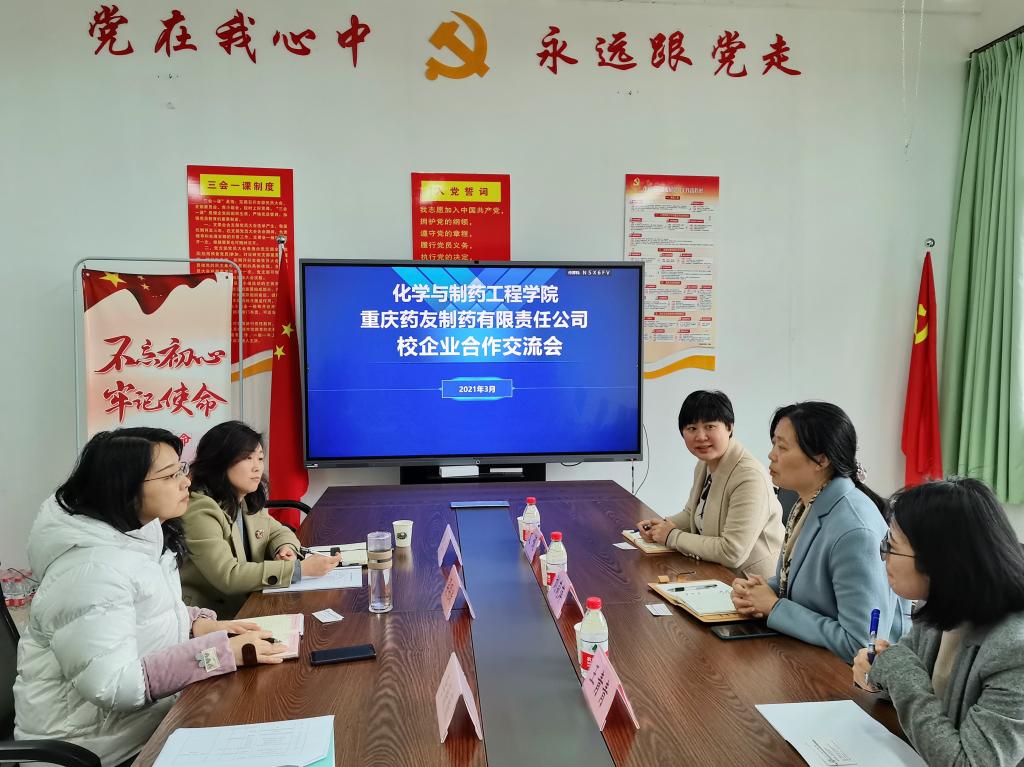 为加强校企合作,做好2021届毕业生就业工作,进一步提升人才培养质量,3月10日上午,重庆药友制药有限责任公司培训发展部总监刘莉萍一行到学校开展校企合作洽谈。化学制药工程学院副院长吴明珠及相关负责人等参加了座谈交流。