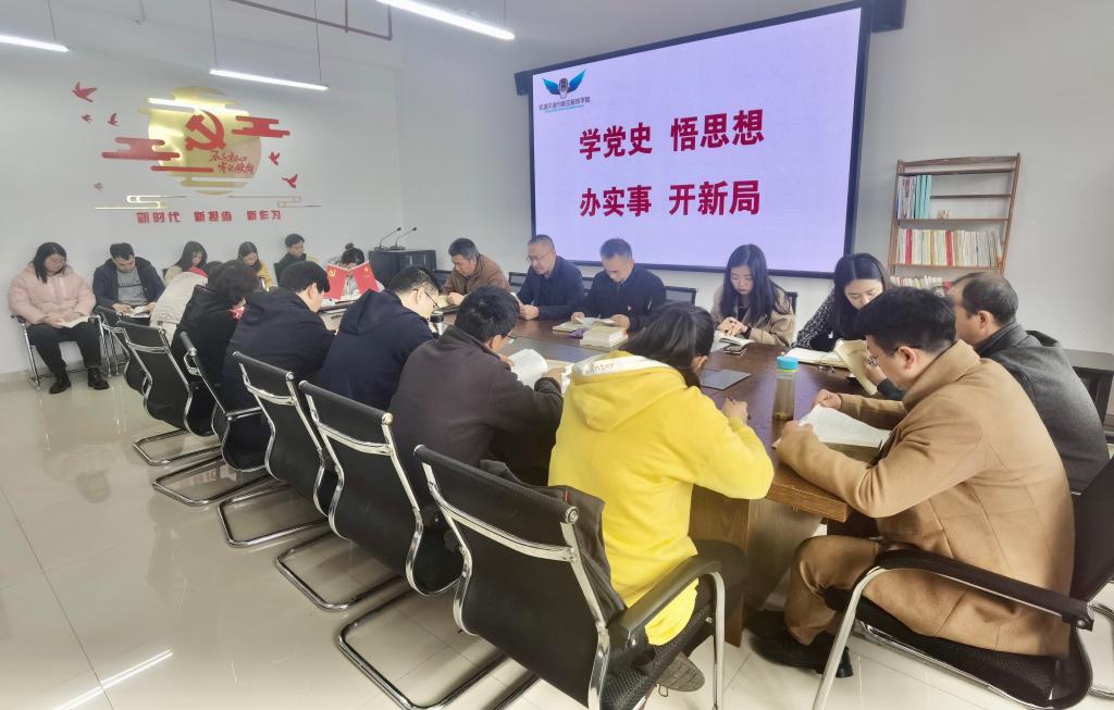为庆祝中国共产党成立100周年,全面贯彻落实习近平总书记在党史学习教育动员大会上的重要讲话精神,3月26日,学校轨道交通与航空服务学院党总支在第一实训楼410会议室召开“学党史·悟思想·办实事·开新局”专题党史学习教育会。轨道交通与航空服务学院全体教职员工参加会议,会议由学院党总支书记、院长钟富平主持。