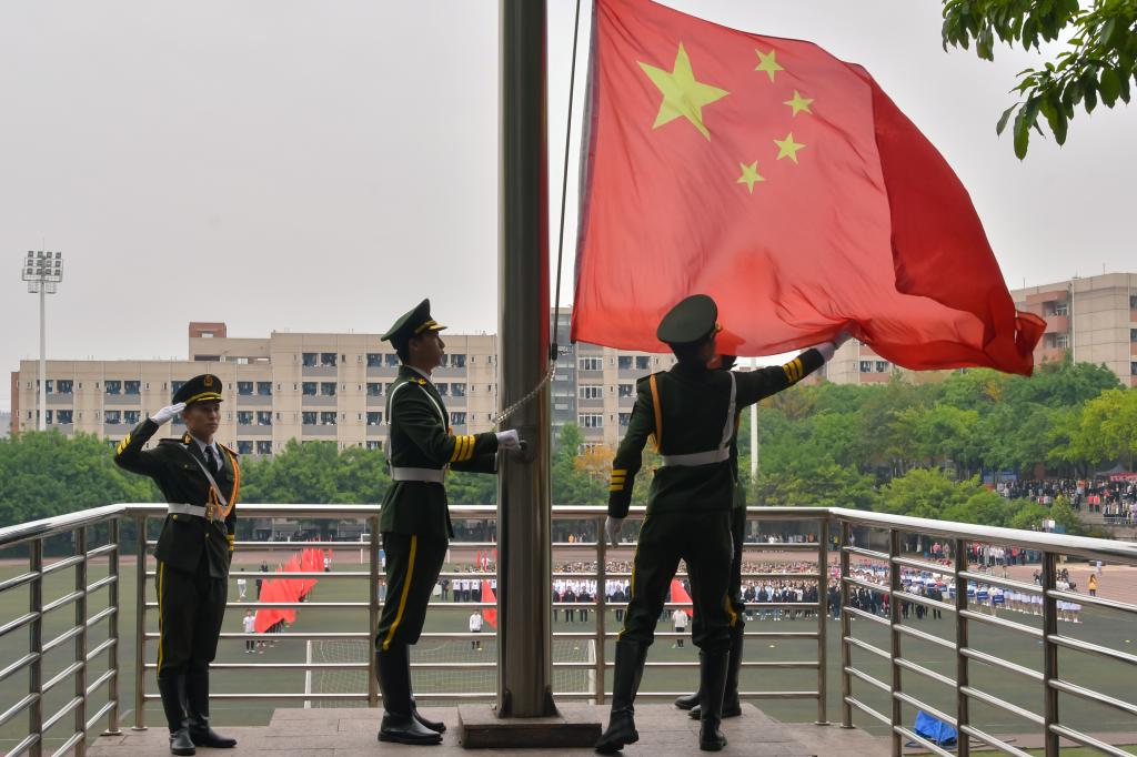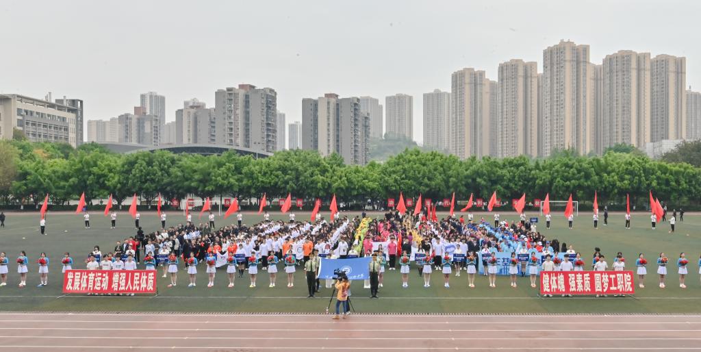 开幕式上,国旗手们领衔出场!他们踏着整齐标准的正步,伴着慷慨激昂的进行曲,护卫着五星红旗一路前行,庄严的气氛弥漫整个运动场!紧随其后的是校旗队、标语队、鲜花队、红旗队。长风卷起四月的春色与红旗、鲜花的海洋撞个满怀,把运动场的色彩染得格外绚烂。裁判员方队、各二级单位师生运动员方队等依次入场,精神抖擞地走过主席台,并带来一组组引人入胜的团体表演,尽显重工人的蓬勃风采。