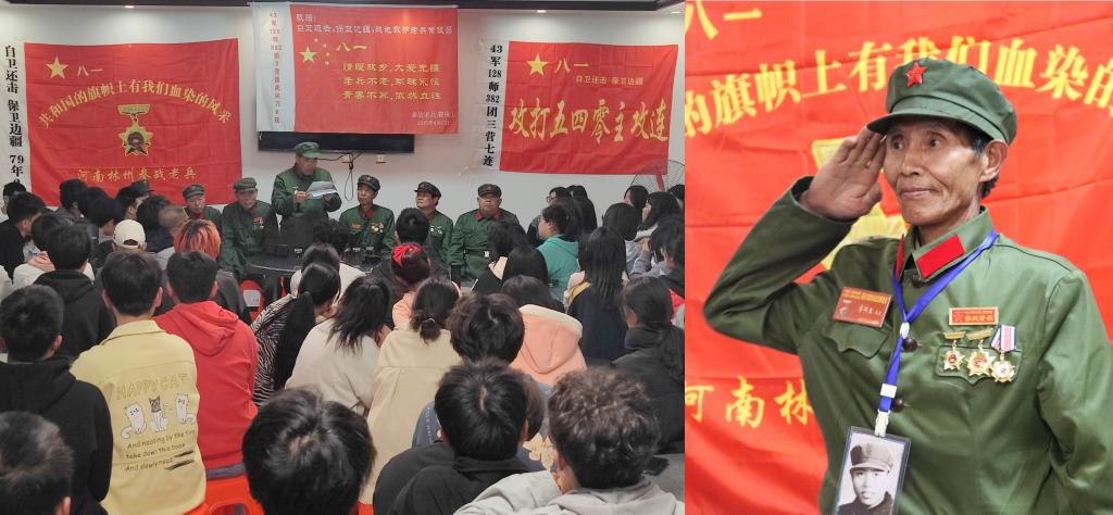 本次访谈共邀请了7位林州参战老兵为学生近距离分享军旅生涯,并告诫同学们要珍惜现有生活,鼓励大家努力提升技能,将来报效党和祖国。