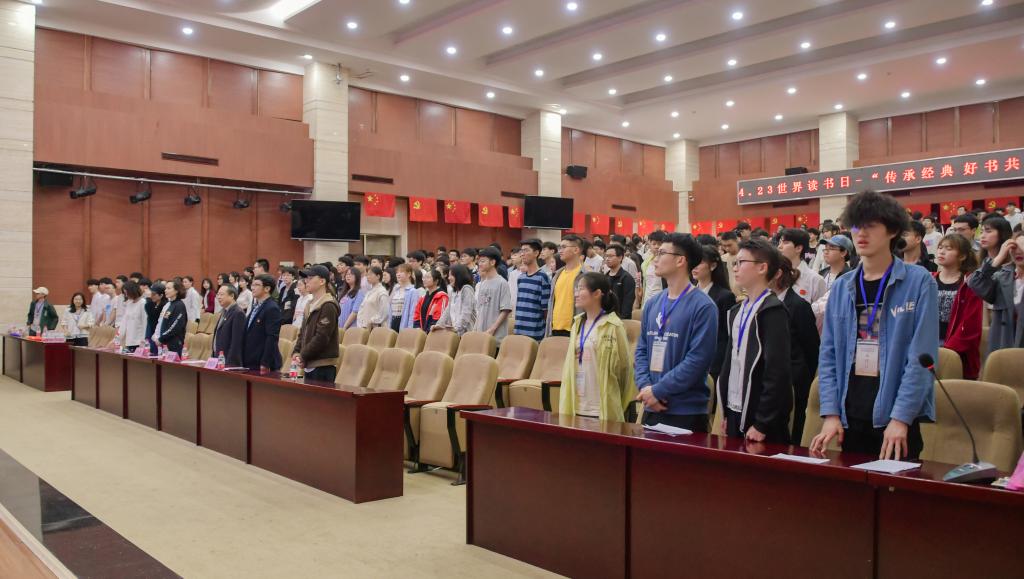 活动在全体与会人员合唱《我和我的祖国》中拉开序幕。会上,徐兴旺副院长致辞,他强调了学校举办“世界读书日”系列活动的重要意义,勉励大家多读书、读好书、诵经典。随后,他还讲述了自己与书籍的缘分,回忆了读书伴随他求学、工作、成长的历程,分享了对读书的深切感悟,并寄望同学们积极主动地投入到读书活动中去,学好知识、增长才干,为中华民族的伟大复兴而努力学习。