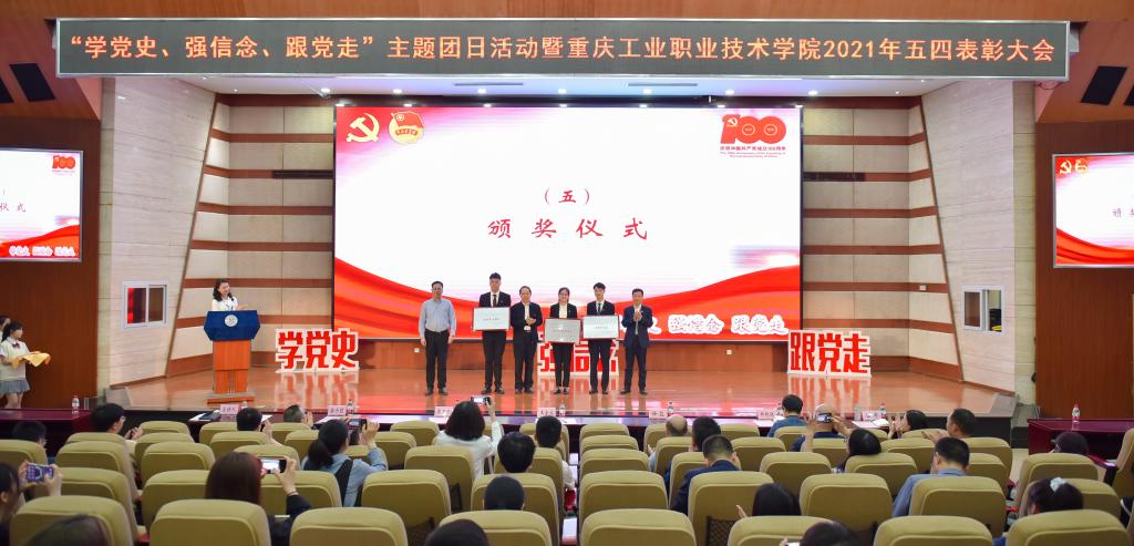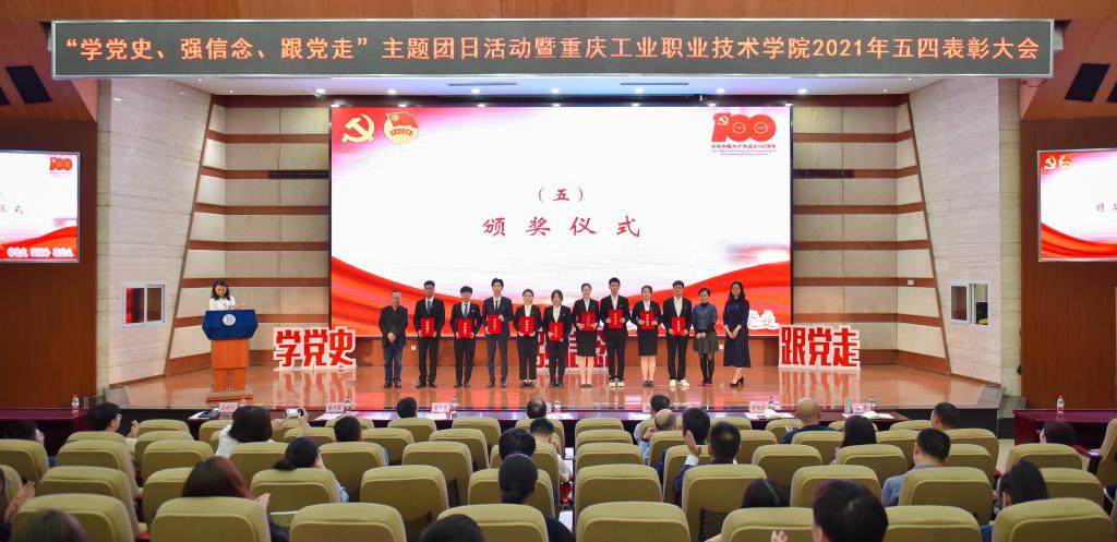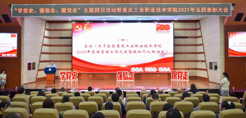 为庆祝中国共产党成立100周年,更好的发挥广大团员青年作为党的后备军作用,4月29日下午,在五四青年节来临之际,学校在第一学术报告厅举办了“学党史、强信念、跟党走”主题团日活动暨2021年五四表彰大会。学校党委班子成员出席大会,相关职能部门负责人、各二级学院党总支书记、团总支书记、辅导员和团员青年代表共计200余名师生参加了大会。会议由团委书记傅田主持。