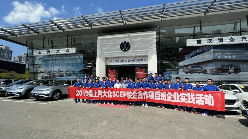 5月16日,由学校车辆工程学院组织,2019级35名上汽大众SCEP校企合作项目班的学生在项目老师的带领下进行了为期一天的上汽大众经销商实践活动。在本次活动中,同学们走进了重庆三丰圣田斯柯达店(大众旗下品牌4S店)和重庆博众4S店,受到了企业热情接待。