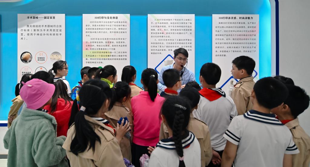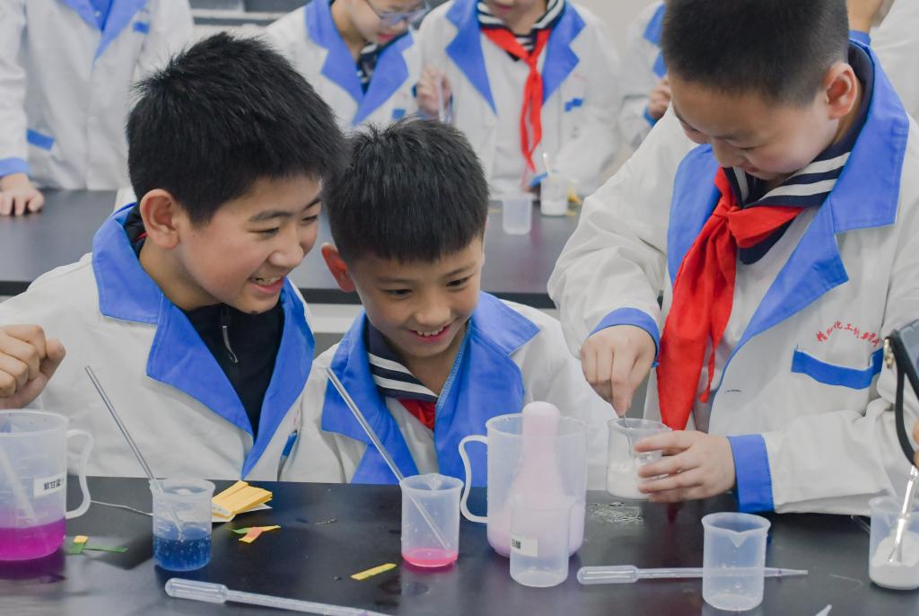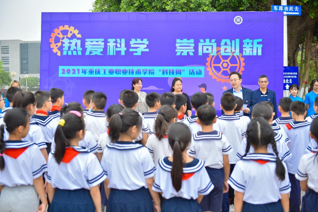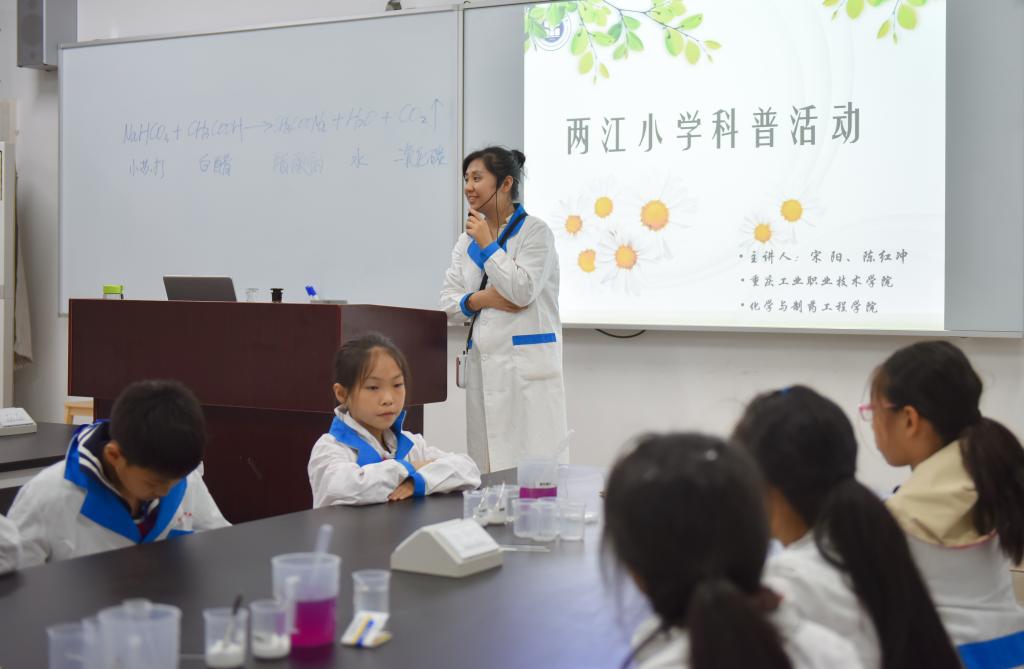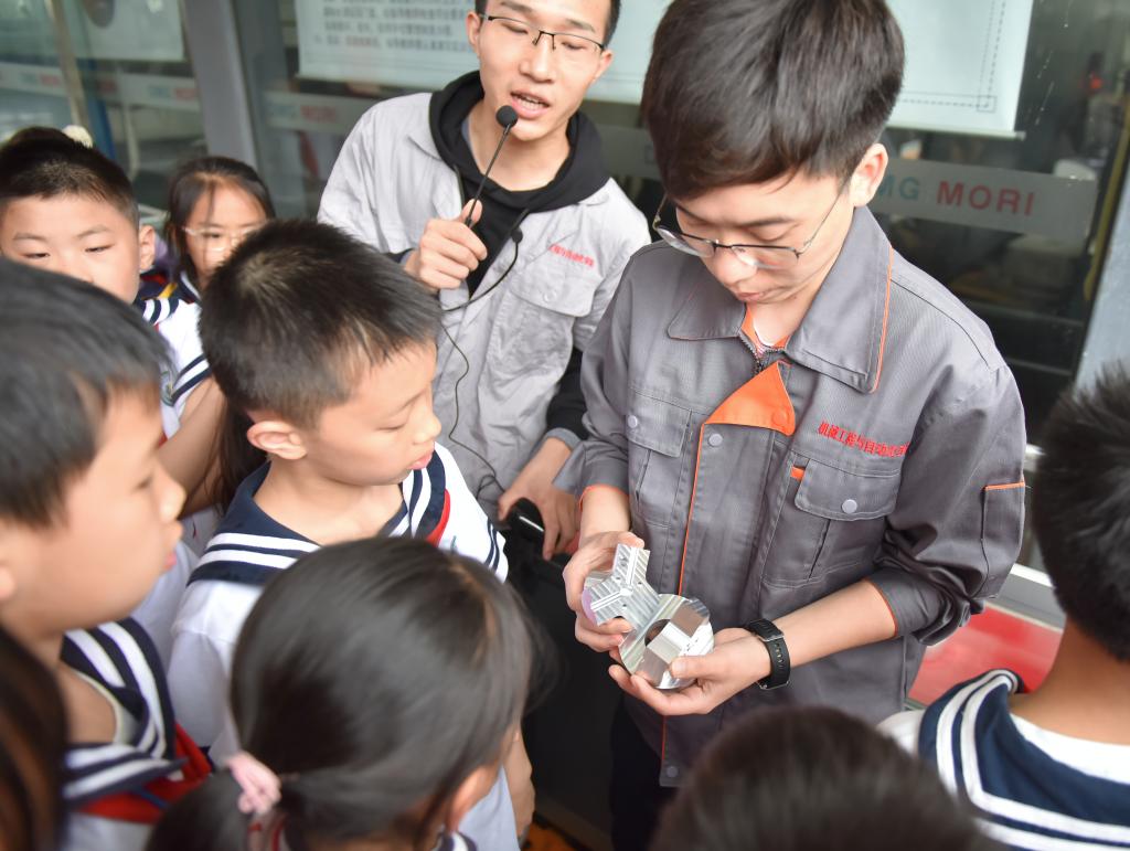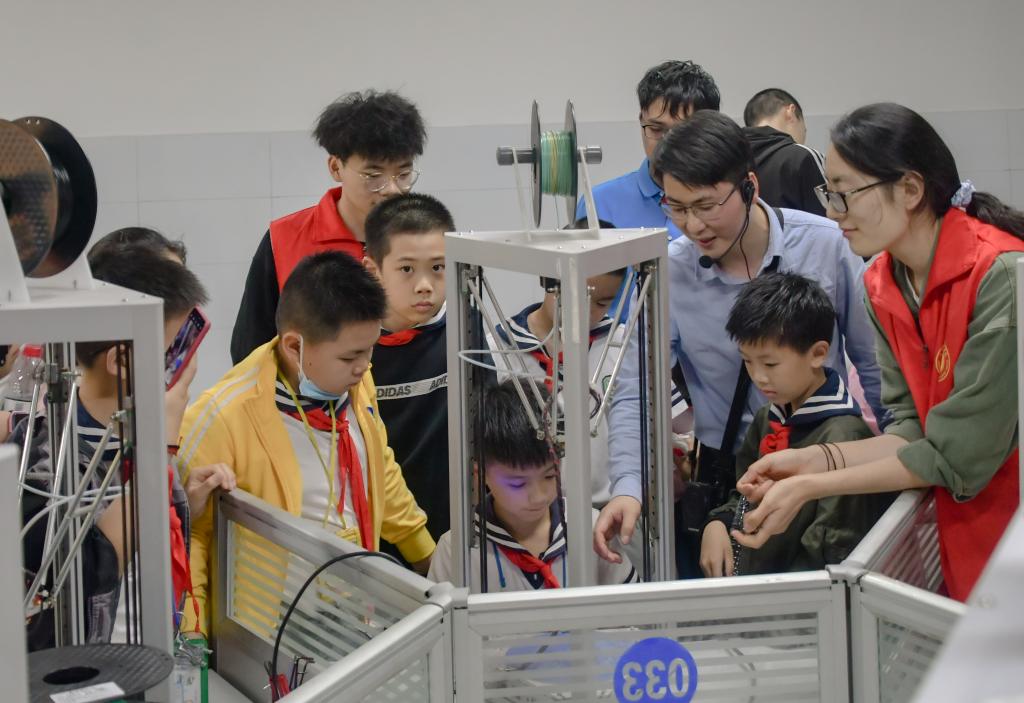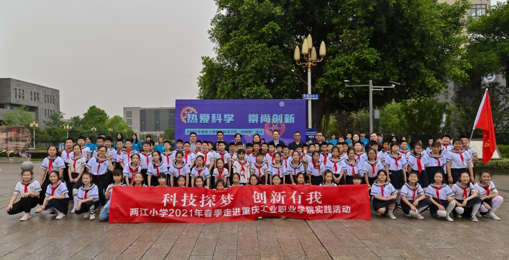 活动中,渝北两江小学同学们在志愿者的带领下参观了学校3个教学实训基地并参加了“智能制造演示”“有趣化学小实验演示”“3D打印演示”3个科技实践活动。