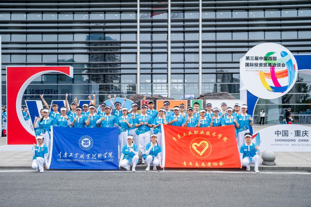 近日,由商务部、水利部、国务院国资委、中国侨联、中国贸促会和重庆市人民政府共同主办的第三届中国西部国际投资贸易洽谈会(以下简称“西洽会”)在重庆国际博览中心举行。学校积极响应团市委号召,组织招募了45名“蓝精灵”志愿者参与西洽会的志愿服务工作。同学们分别在接待组、展览组、外事及会见组、活动组、机动组等组别展开了为期5天的志愿服务,共同为西洽会的顺利举行助力。