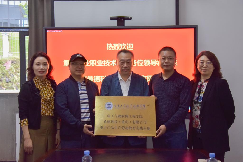 5月26日上午,学校电子与物联网工程学院党总支书记周红霞、院长陈建华、正处级组织员周进民带领学院师生代表前往桑德科技(重庆)有限公司,校企共同举行了校外劳动教育实践基地授牌仪式。桑德科技(重庆)有限公司董事长王长征、厂长李俊、副经理李瑛、总经理助理李兵参加了仪式。