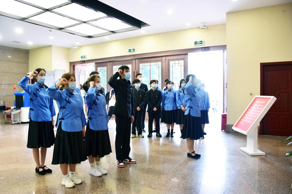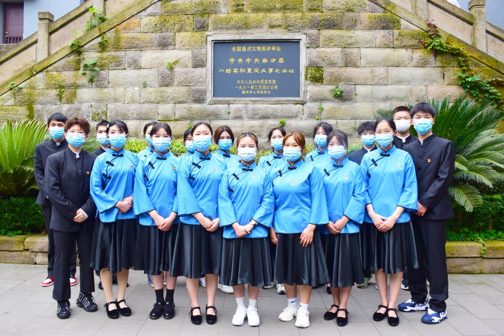 在纪念馆内,全体学生党员面对党旗重温入党誓词,用铿锵有力的声音传递共产党员不变的初心和使命。随后,全体成员走进红岩革命纪念馆二楼参观学习,他们以历史时间为轴,以革命历程为线,通过大量鲜活的图文故事,全方位、多角度地学习了不朽的红岩精神。紧接着,全体成员参观了中共中央南方局八路军驻重庆办事处旧址,同学们深切感受到了革命先辈波澜壮阔、艰苦卓绝的斗争历程和老一辈无产阶级革命家的“大德大智”精神风范。