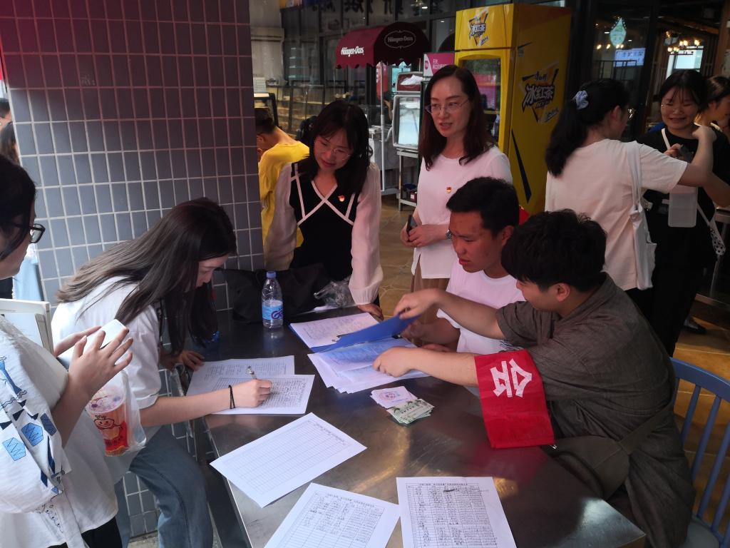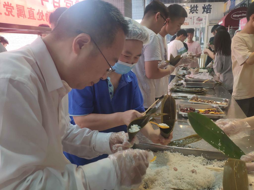 开幕式后,徐兴旺副院长和师生们一起动手包粽子,在弘扬中华传统文化的同时和大家聊党史故事、话端午屈原、谈学习学业。活动现场,同学们踊跃参加“百年党史”“浓情端午”“节约粮食”“反食品浪费法”主题有奖问答活动。午餐时,由基建后勤处直属党支部老师和伙管会同学组成的文明劝导员对自觉光盘用餐的同学发放粽子以示奖励。一千余个粽子被光盘的同学换领一空,同学们品尝着美味的粽子,感受着端午佳节的浓厚氛围,体验着光盘的快乐,根植了勤俭节约的意识。