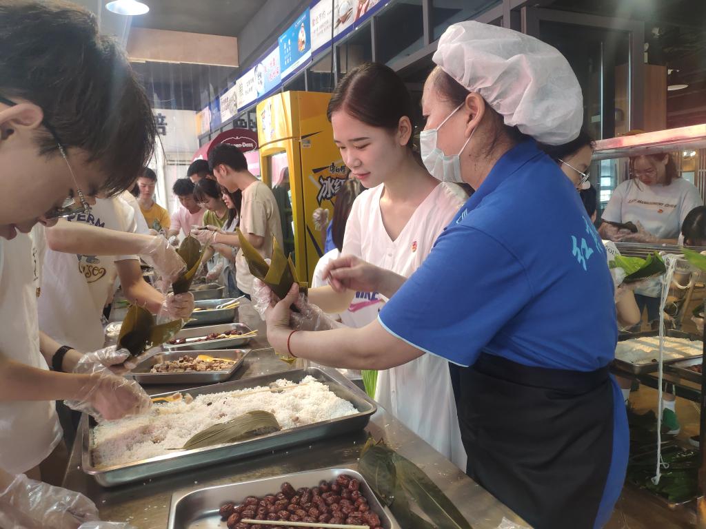 师生们一起动手包粽子
