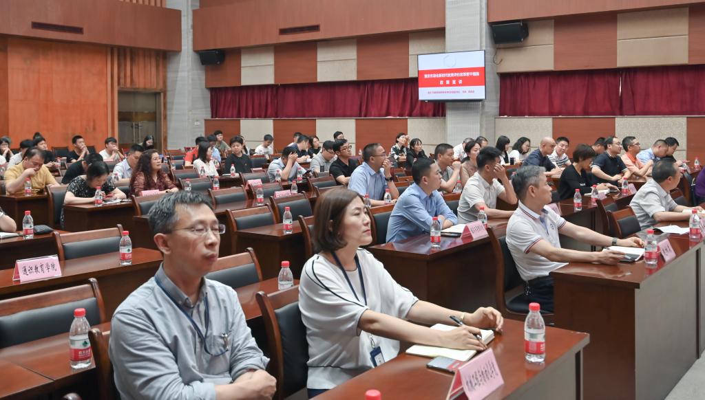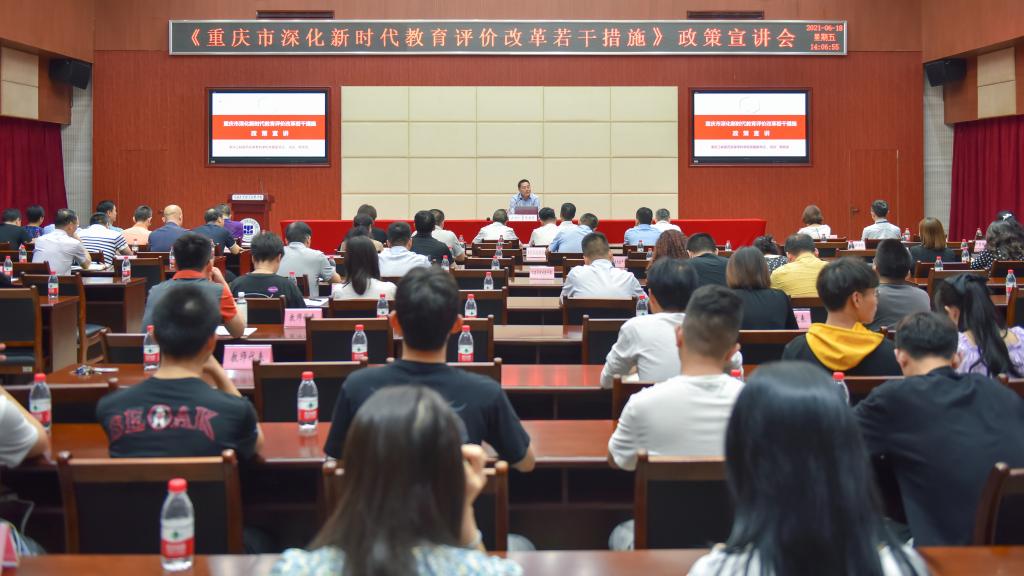 为认真贯彻落实习近平总书记关于教育评价改革的指示精神和要求,扎实推进学校新时代教育评价改革工作,6月18日,学校在第二学术报告厅召开了《重庆市深化新时代教育评价改革若干措施》(以下简称《若干措施》)政策宣讲会,邀请了市教育评价改革咨询指导委员会委员、重庆三峡医药高等专科学校党委副书记、校长陈地龙到校作专题报告。全体校领导、党委委员、各职能部门负责人、二级学院党政领导班子及师生代表共计140余人参会。学校院长郭天平主持会议。