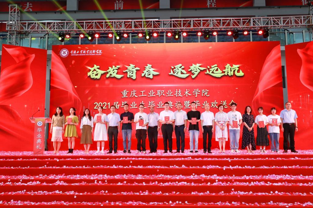 会上,秦传江副院长宣读了《关于准予学生毕业的通知》,学校党委委员、宣传部部长钟艳红和党委委员、财务与资产管理处处长匡平分别宣读了《中共重庆市委教育工委 重庆市教育委员会关于2021年普通高等教育优秀毕业研究生和优秀大学毕业生的通报》及《关于表彰2021届优秀毕业生的通报》。王官成书记和各二级学院院长为优秀毕业生代表颁发证书。