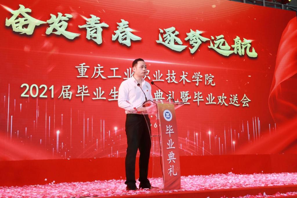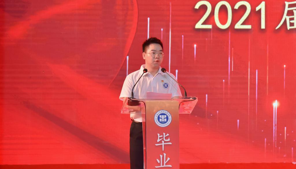 校友代表、2008级自动化学院学生青增泰勉励毕业生要找到目标、做好规划,保持努力。坦然接受彷徨和焦虑,尽自己最大的努力保持心态上的从容,昂首挺胸,勇敢坚定地阔步向前,在工作中绽放光芒,在奋斗中精彩人生。2021届毕业生代表、机械工程与自动化学院2018级李鸿浩表示,将践行“工成于思,业精于勤”的校训及“团结、诚信、笃行、创新”的学风,用担当和奉献成为民族复兴新力量。教师代表、机械工程与自动化学院院长裴江红勉励学生在未来之路上要热爱祖国,忠于人民,知行合一,勤勉务实。他讲到“不管是顺境还是逆境,希望大家都要求真务实、练真本领。你们奋斗的故事,将会成为重工人精彩的篇章。”