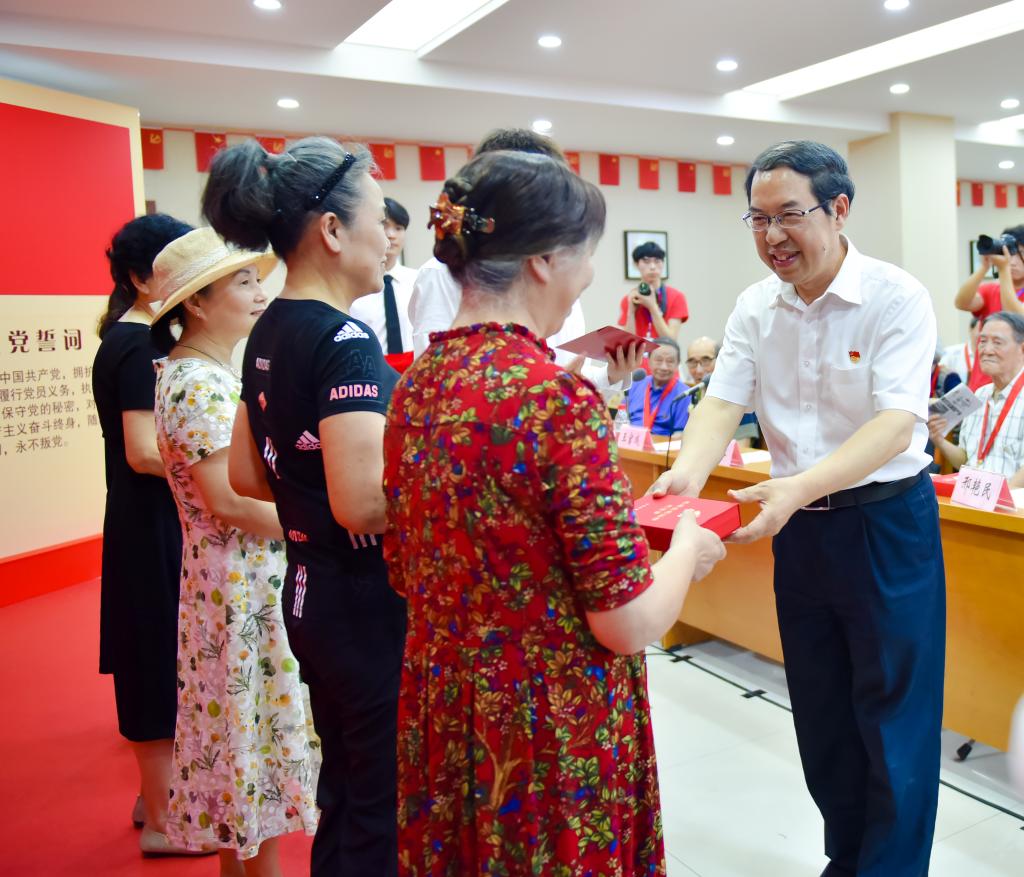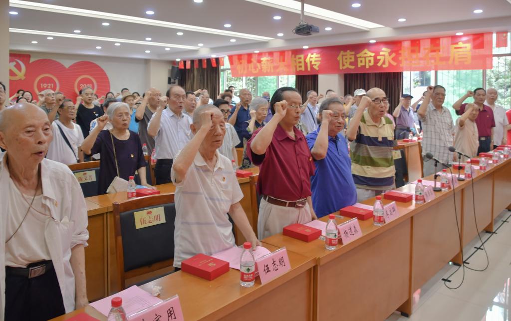 大会在庄严的国歌声中拉开序幕,全体党员在王官成书记带领下重温入党誓词。随后,秦传江副院长宣读了“光荣在党50年”纪念章颁发对象名单,王官成书记为张棣等53名老党员颁发了纪念章和慰问卡。高保生和张肇基同志作为老党员代表发言。他们表示,纪念章的发放表达了党和国家对老党员们的认可和信任,充分证明了党中央没有忘记老党员,时刻关心关怀我们。这一份沉甸甸的荣誉,所有受章党员都看在眼里,感动在心里。我们要牢记习近平总书记殷殷嘱托,继续传递正能量,把党的初心和使命铭记于心、见诸于行,为党的事业增光添彩,为续写百年大党的新篇章而发挥余热。