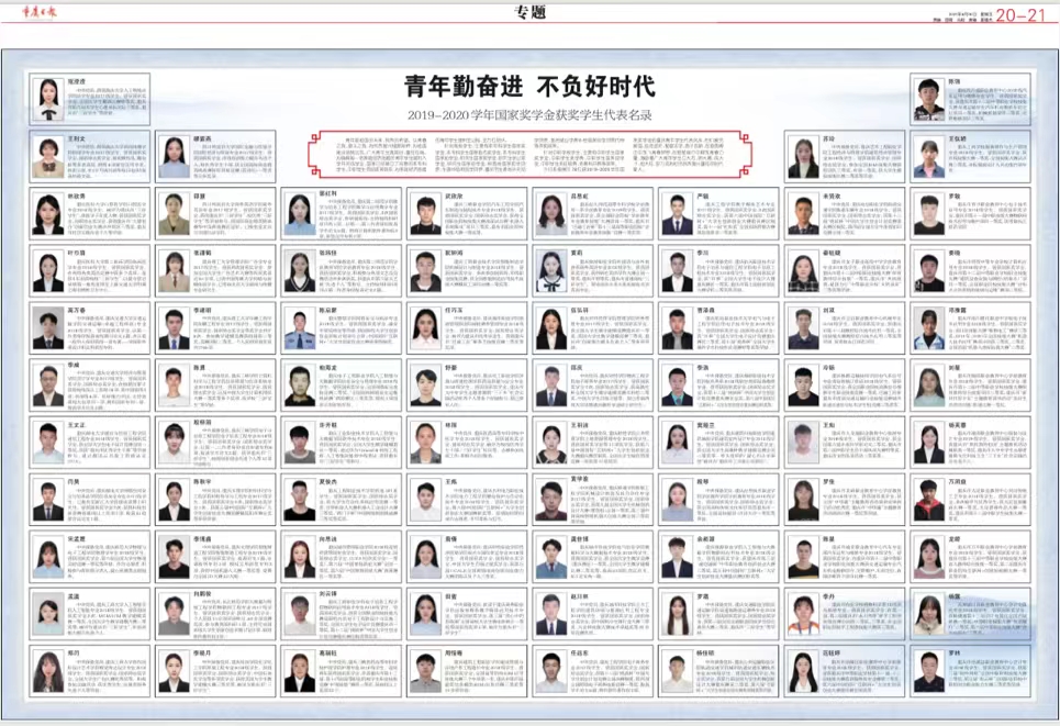 2019-2020国家奖学金获奖学生代表名录(图片来源:重庆日报)