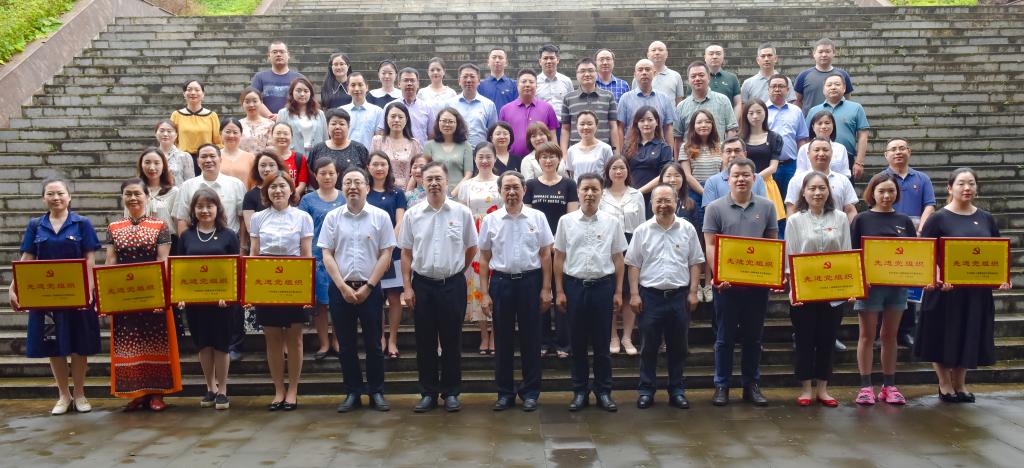 全体与会人员奏唱国歌,拉开了会议序幕。党委书记王官成同志领誓,全体与会党员与预备党员集体重温入党誓词。随后,党委副书记徐益同志宣读了《关于表彰2020-2021学年先进党组织、优秀共产党员和优秀党务工作者的通报》,对机械工程与自动化学院等14个先进党组织、王婧等83名优秀共产党员、白欣等22名优秀党务工作者予以表彰。党委班子成员先后为优秀共产党员、优秀党务工作者代表颁发荣誉证书,为先进党组织颁发奖牌。王官成书记为教育部首批全国党建工作样板支部汽车运用教研室党支部授牌。