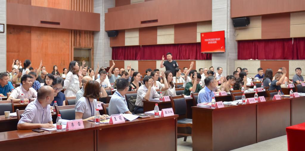 大会在庄严的国歌声中拉开序幕。会上,郭天平院长对学校“十三五”时期及2020年的工作的进行了回顾,并就学校“十四五”发展规划、新校区建设、绩效工资改革和职称评审改革四项重点工作向大会作了说明。与会教职工代表围绕上会审议稿进行了分组讨论和意见汇总,并将讨论结果向大会主席团进行汇报。随后,学校工会副主席孙建冬同志作为大会主席团成员代表向教职工代表反馈了审议意见。经全体教职工代表举手表决,会议通过了学校《“十四五”发展规划》《高竹校区建设方案》《职称评审改革文件》和《绩效工资改革文件》。